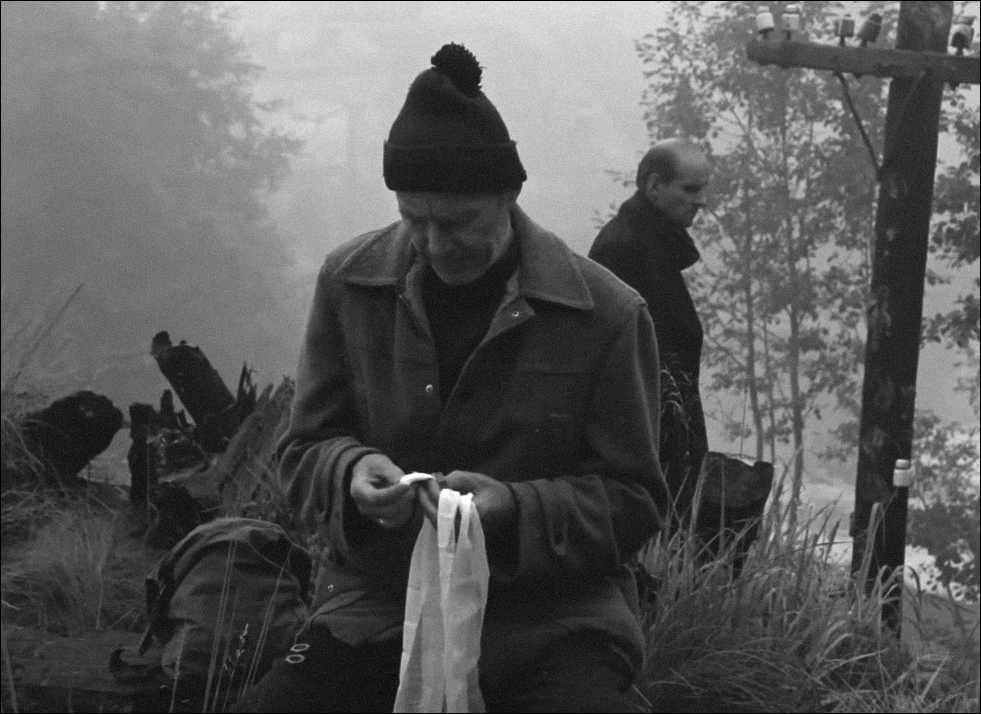Profesorul și Scriitorul îndată după sosirea în Zonă (minutul 46)