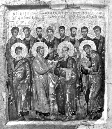Sfinților Apostoli, prin voi s-a dăruit lumii propovăduirea Evangheliei și s-a înălțat Biserica lui Hristos în mulțime mare de noroade și limbi ale pământului, făcându-se lucrătoare biruința asupra morții veșnice prin revărsarea Duhului Sfânt. Avându-vă ca și părinți în Dumnezeu, ne întărim și ne umplem de nădejde, știind că și voi ați fost oameni precum noi și ați îndurat felurite neputințe și înnegurări sufletești. Și iată că, după ce Domnul a pătimit moarte prin Cruce, v-ați risipit inimile în durerile mâhnirii și ale deznădăjduirii și, adunându-vă dimpreună, stăteați încuiați de frica iudeilor, îngrijorându-vă și suspinând nemângâiați. Însă biruința asupra morții săvârșită de Hristos Domnul, fiind cu neputință de a fi îngrădită, iar Lumina ei cea fără de ani străbătând toate veacurile, Însuși Domnul, Cel Care, ca un Preaputernic, a sfărâmat încuietorile cele veșnice ale iadului, neîncetat vedea inimile voastre și vă cunoștea frica ce nădăjduia să se ascundă după grosimea cea subțire a ușii. Pentru aceea și El, nu bătând la ușă, nu deschizând zăvorul, nu mișcând balamalele sau încuietoarea ușii a venit la voi, ci prin dumnezeiasca Sa ființare v-a stat în mijloc, încredințându-vă de Învierea Sa și făcând să strălucească cu putere cuvântul pe Care El Însuși l-a grăit: „Unde sunt doi sau trei adunați în numele Meu, acolo sunt și Eu în mijlocul lor” (Matei 18, 20).