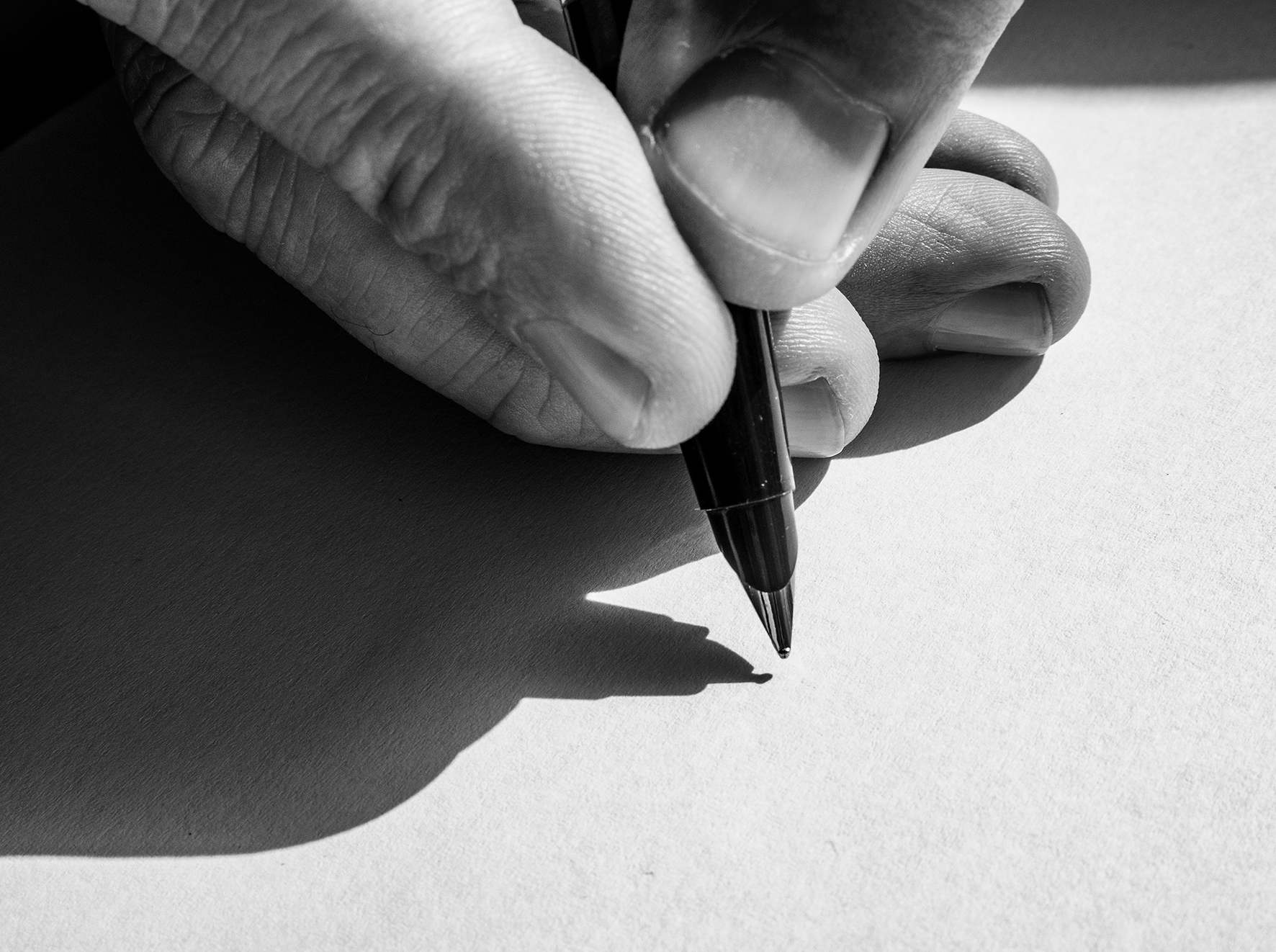 Ca și creionul, atunci când e folosit la scris, stiloul se sprijină pe degetul mijlociu, iar de deasupra este ținut de degetul mare și de cel arătător. Privind mai atent la ceea ce se petrece când scriem cu stiloul, vedem că, dintr-un rezervor care se află deasupra nivelului hârtiei, cerneala albastră se prelinge foarte fin, fiind coordonată de mișcarea peniței după cum e purtată de mișcările mâinii omului.